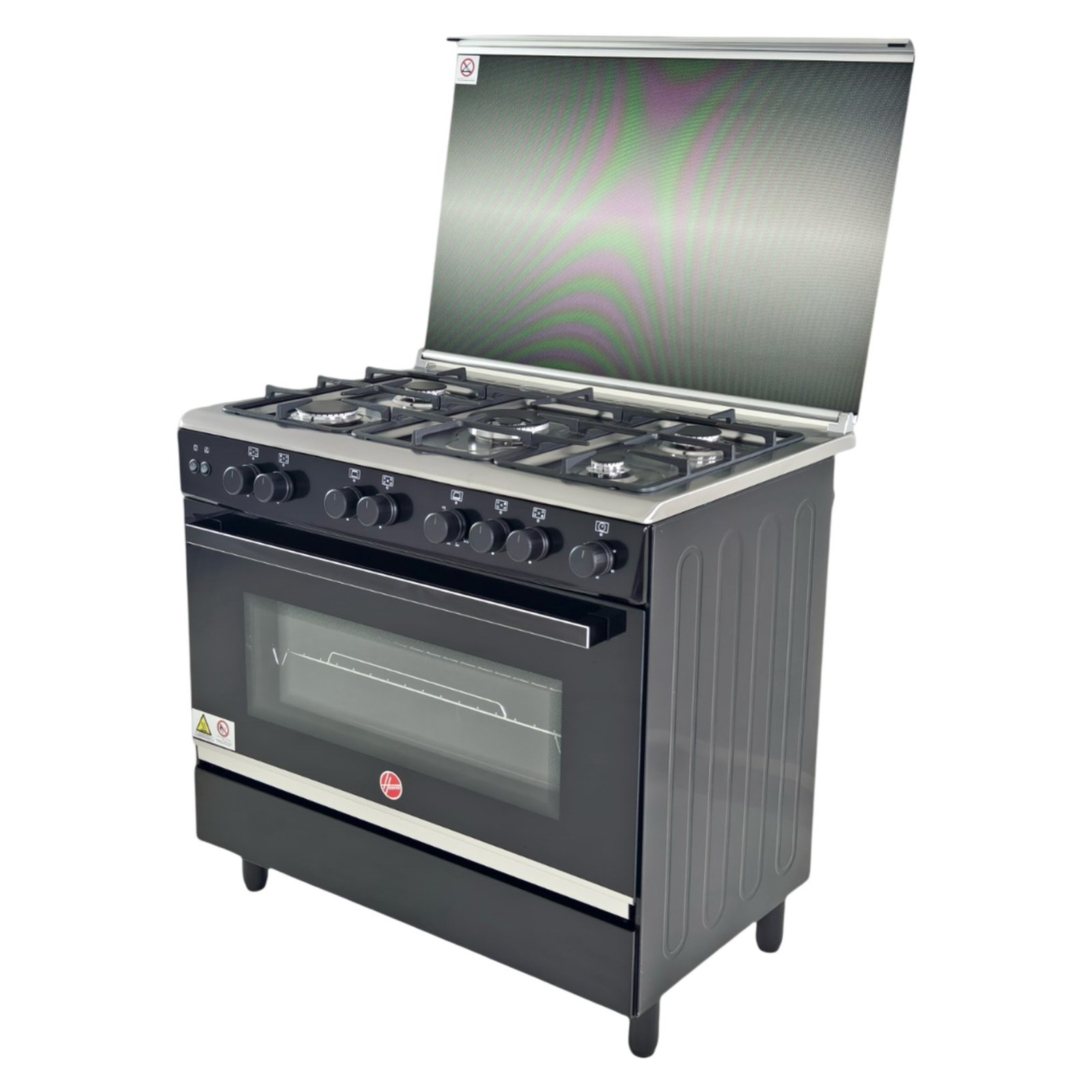 Elevate your cooking experience with the Hoover Gas Cooker HGC-G95G-RB 90 cm Black – a stylish, high-performance freestanding gas cooker ideal for UAE homes from Al Wardah Elect. & Watch Co. This 90 cm model combines 4 powerful gas burners with an electric oven for versatile everyday cooking, precise control, and a sleek black finish that adds elegance to larger kitchens or villas in Sharjah and beyond.